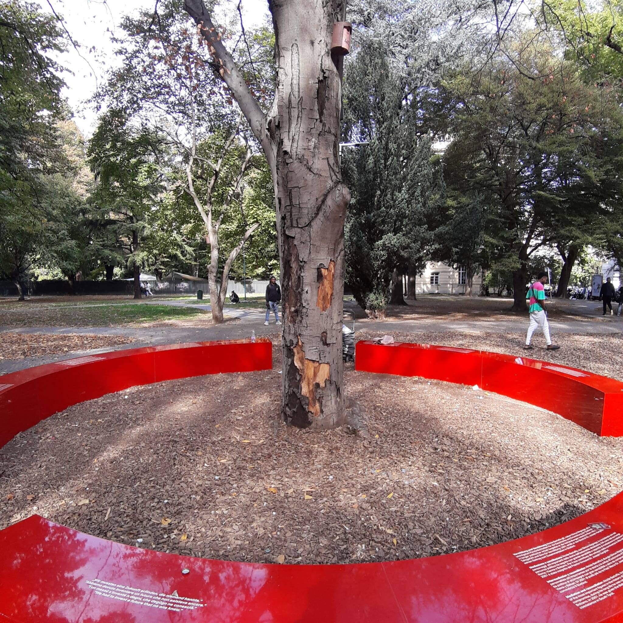 Der Gesundheitszustand der mächtigen Buche (Fagus sylvatica) im Alcide-Berloffa-Park im Bahnhofspark gab schon seit längerer Zeit Anlass zur Sorge. Nachdem bereits im vergangenen Oktober Rindenablösungen festgestellt worden waren, wurde der Zustand des Baumes ständig überwacht. Die Untersuchungen der oberirdischen und unterirdischen Pflanzenteile haben ergeben, dass die Buche sehr krank ist und eine Gefahr für die Sicherheit darstellt. In den letzten Tagen häufte sich auch der Abbruch morscher Äste, daher haben die Verantwortlichen der Stadtgärtnerei nun beschlossen, dass die Buche schnellstmöglich gefällt werden muss. An ihrer Stelle wird vorerst kein neuer Baum gepflanzt, da in naher Zukunft die Arbeiten für die Umgestaltung des gesamten Parks beginnen werden. Auch die rote Sitzgelegenheit, die die Buche einfasst, wird dann einen neuen Standort erhalten.