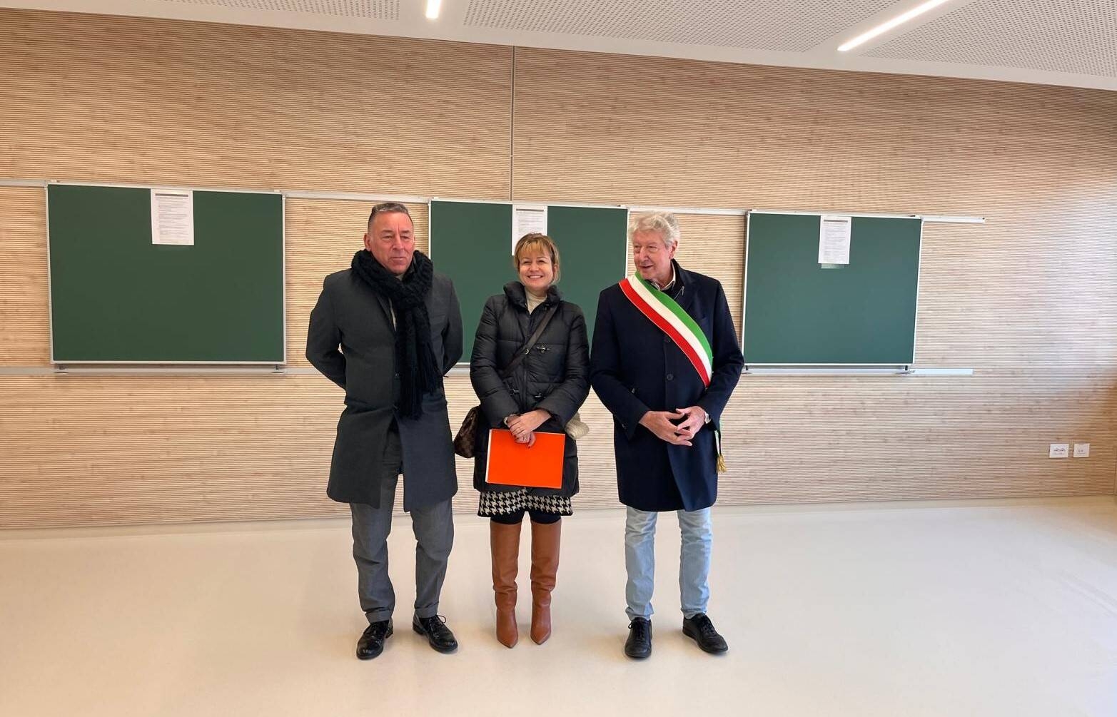 Heute Vormittag wurde der neue Gebäudeflügel der Mittelschule „Archimede“ der Öffentlichkeit vorgestellt. Anwesend waren der Bürgermeister von Bozen, Renzo Caramaschi, der Vizebürgermeister und Stadtrat für öffentliche Arbeiten, Stephan Konder, Schulstadträtin Johanna Ramoser und Technikerinnen und Techniker der Gemeinde- und Landesverwaltung.