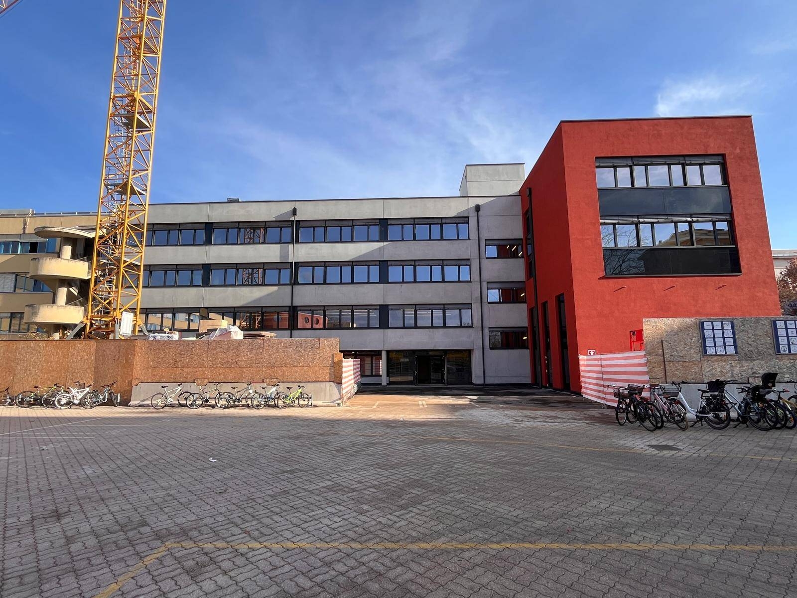 Die Archimede-Schule ist einer der größten Schulen von Bozen. Sie befindet sich in der Duca-d’Aosta-Straße / Ecke Roenstraße. Da das Schulgebäude in die Jahre gekommen ist, muss es einer Generalsanierung unterzogen werden. Das Projekt sieht vor, dass es um einen Gebäudeflügel erweitert und energetisch saniert wird, insbesondere an der Nordfassade, und der Ostflügel muss an die geltenden Bestimmungen angepasst werden. Um den Schulbetrieb während der Bauarbeiten aufrecht erhalten zu können, werden die Arbeiten in zwei Phasen durchgeführt: Zunächst wird der neue Gebäudeflügel in Richtung Südwesten errichtet, und dann wird die Sanierung des alten Mittelschulgebäudes in Angriff genommen. Da der neue Gebäudeflügel nun fertiggestellt ist, werden die Schülerinnen und Schüler in den nächsten Tagen dorthin übersiedeln, damit mit der nächsten Bauphase, d.h. mit der Sanierung des alten Schulgebäudes, das an der Duca-d’Aosta-Straße liegt, begonnen werden kann. Hier ist eine Generalsanierung geplant, und zwar wird das Gebäude in statischer und architektonischer Hinsicht saniert, es wird an die Vorschriften über erdbebensicheres Bauen, Brandschutz, Barrierefreiheit und Lärmschutz angepasst, die Anlagen werden erneuert und die Außenbereiche neu gestaltet.