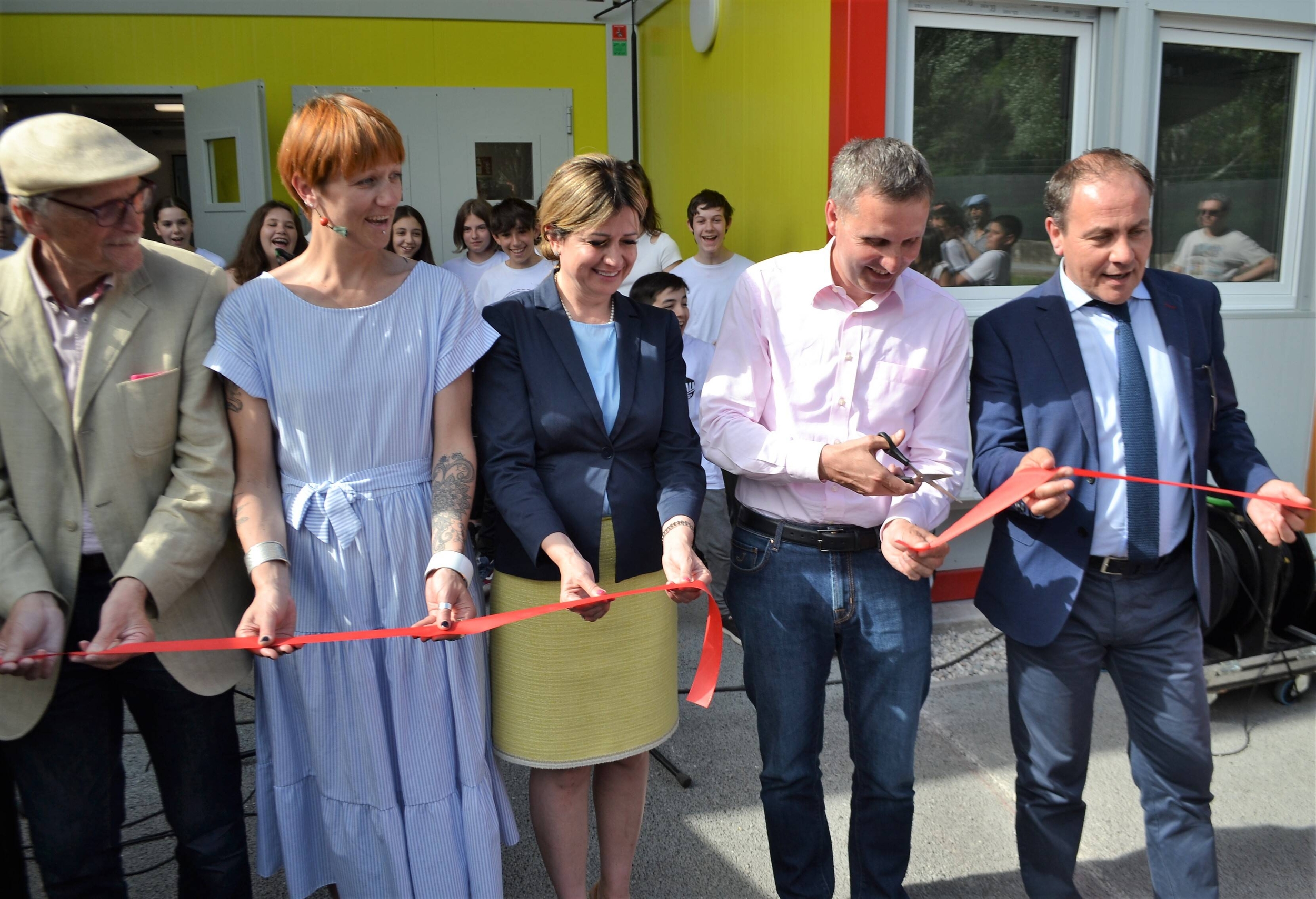 Am heutigen Nachmittag wurde im Beisein der Vertreterinnen und Vertreter der Stadt Bozen (Vizebuergemeister Luis Walcher, Stadtraetin Johanna Ramoser), des Landes Südtirol (Vizepraesident Giuliano Vettorato) und der Mittelschule „Ada Negri“ die neue Containerschule eingeweiht. Sie befindet sich auf dem ehemaligen Fußballplatz „Drusetto“ in der Triester Straße in Bozen hinter der Sporthalle „PalaMazzali“. Ab Herbst 2023 findet der Unterricht für die Schülerinnen und Schülern der Mittelschule „Ada Negri“ in der Containerschule statt. Die alte Mittelschule wird nämlich einer umfassenden Generalsanierung unterzogen. Die Containerschule steht dann ab Herbst 2024 anderen Schulen als Ausweichschule zur Verfügung.