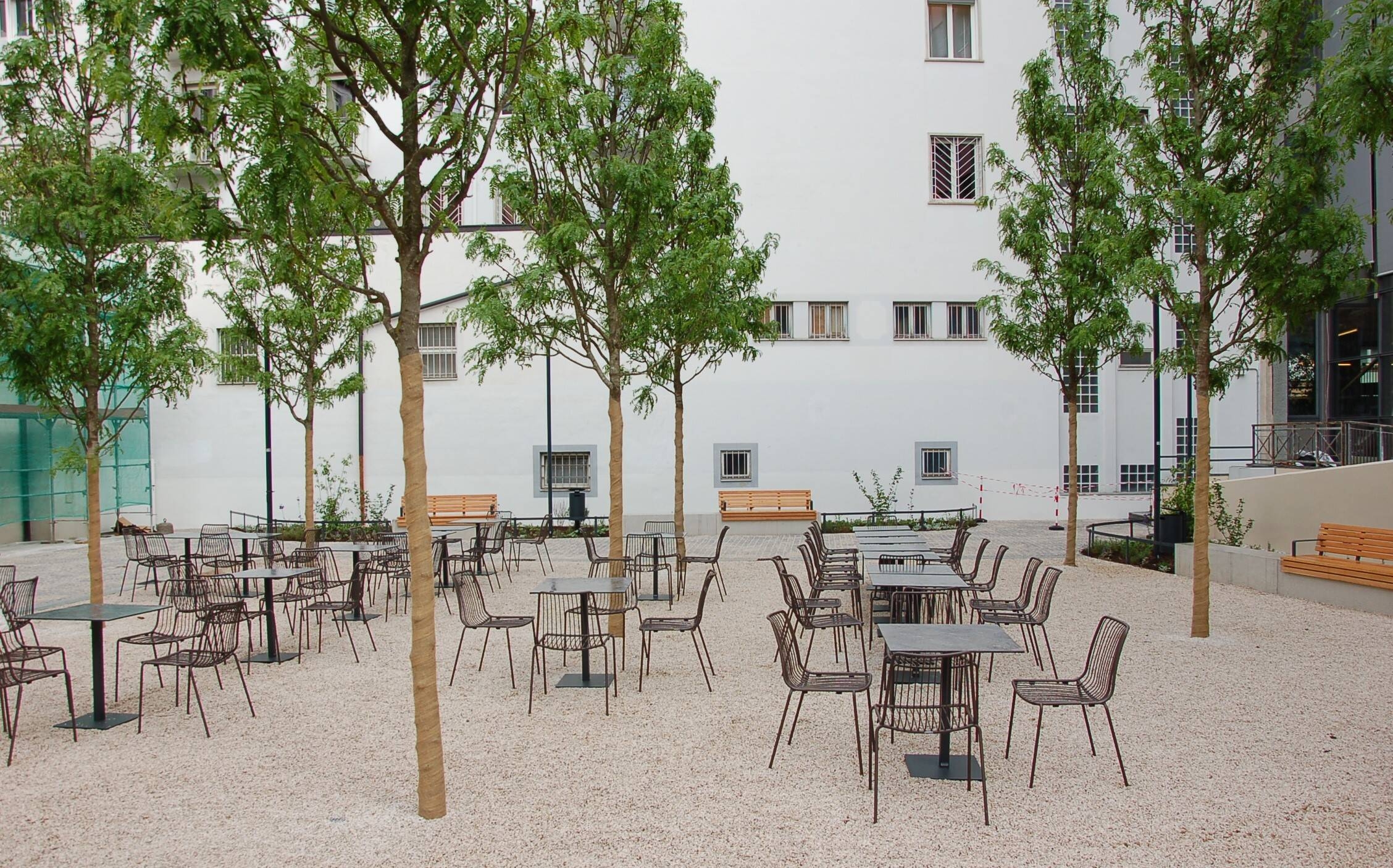 Der öffentliche Platz inmitten der Waltherpassage, die den Waltherplatz mit der Weintraubengasse verbindet, wurde im Zuge der Umgestaltung von allen strukturellen Elementen befreit. Die bestehenden Pflanzeneinfassungen und Betonplatten wurden abgebrochen, sodass eine einheitliche, unversiegelte Fläche entstand, die in den letzten Wochen mit hochstämmigen Bäumen bepflanzt wurde und künftig als Gastgarten genutzt werden kann. Entstanden ist ein gemütliches Plätzchen inmitten der Altstadt, mit großzügigen, schattenspendenden Bäumen, die den Platz gerade an heißen Sommertagen zu einem angenehmen Aufenthaltsort und zu einem sozialen Treffpunkt machen.