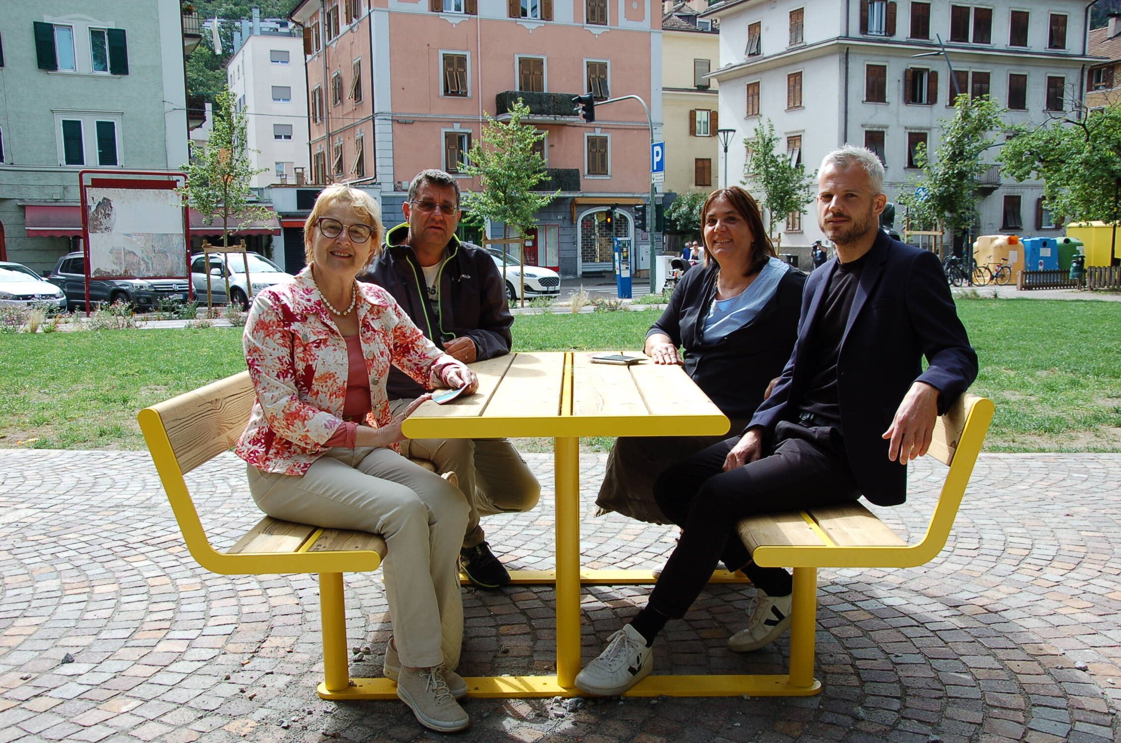 Wie der Leiter der Dienststelle Matthias Zinglere und der Bauleiter Franco Nones erklärten, wurde im Tambosi-Park auch eine neue Ruhezone eingerichtet, wo Plattformen als Sitzgelegenheiten dienen und Tische und Bänke zum Picknicken einladen. Es wurden auch ein kleiner Trinkwasserbrunnen installiert und ein Abfallkorb aufgestellt. Um zwischen dem Fußweg und dem Radweg einen Sicherheitsabstand verwirklichen zu können, wurde in Absprache mit dem Mobilitätsamt der Gemeindeverwaltung beschlossen, einen PKW-Parkplatz zu streichen. Es wurden eine neue Bewässerungsanlage (Tropfberegnung und normale Beregnung) und eine neue Beleuchtung verlegt und die notwendige Boden- und Straßenbeschilderung angebracht.