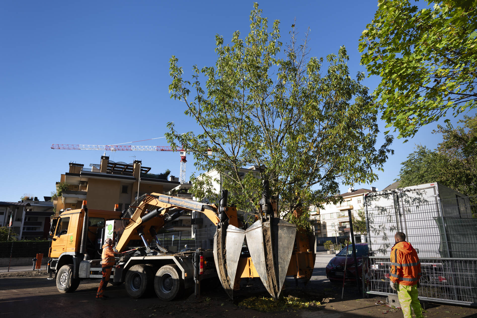 Im Rahmen der vom PNRR finanzierten Arbeiten ist auch eine neue Padel-Anlage in der Sportzone Pfarrhof geplant. Auf dem entsprechenden Gelände, befand sich ein gesunder Baumbestand bestehend aus Ahorn, Eichen und Eschen. Es wurde daher beschlossen, diese nicht zu fällen, sondern direkt vor Ort zu verpflanzen, v.a. da sie auch genau die ideale Größe für eine Verpflanzung hatten. Gemeinsam mit dem Amt für öffentliche Arbeiten, dem Projektierungsamt sowie der Stadtgärtnerei wurden sämtliche notwendigen Vorarbeiten organisiert. Anschließend wurden mit einer Spezialfirma 15 Bäume wurden mit einer speziell entwickelten Maschine ausgegraben, mit einem entsprechend großem Wurzelballen versehen, um ihr Überleben zu sichern. Diese wurden dann an einen vorbereiteten Platz im Umfeld der Sportanlagen Pfarrhof sowie des angrenzenden Parkplatzes gebracht und dort eingepflanzt. Dadurch konnten diese Bereiche durch die neue Anwesenheit dieser Bäume in kürzester Zeit aufgewertet.