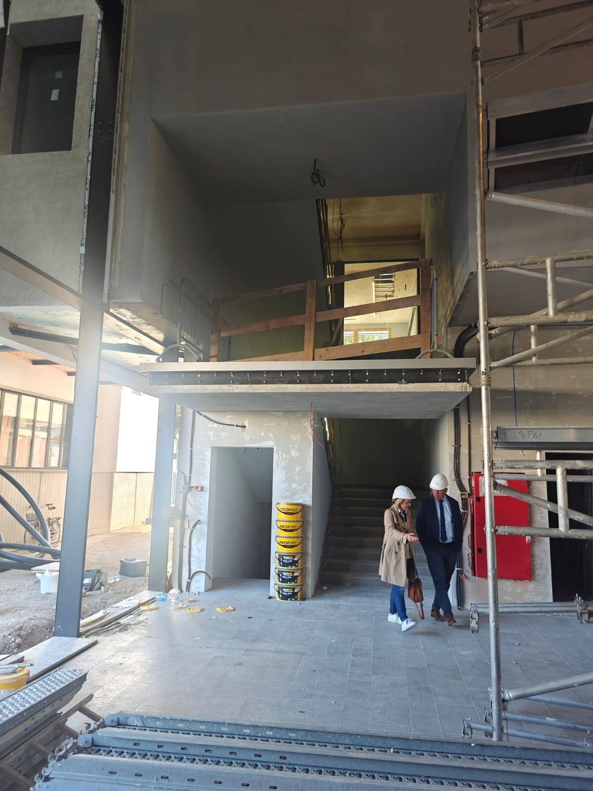 Geleitet wurde die Baustellenbesichtigung, an der auch der Projektverantwortliche Patrick Demattio und die Direktorin des Schulamtes der Stadt Bozen Patrizia Caleffi teilnahmen, vom Direktor der Abteilung für öffentliche Arbeiten der Stadt Bozen Sergio Berantelli und vom Direktor des Amtes für öffentliche Arbeiten der Stadt Leifers Thomas Ebner.