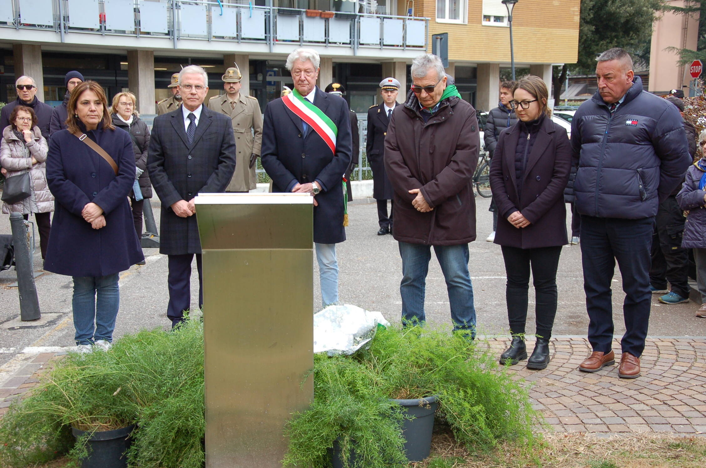 „Jedes Jahr versammeln wir uns hier an dieser Gedenkstätte am 22. Februar, um der zwei jungen Studenten zu gedenken, die ihr Leben hingeben mussten, weil sie das Recht auf Freiheit und Demokratie eingefordert haben.“ sagte Bürgermeister Caramaschi. „Hans und Sophie Scholl und die anderen Mitglieder der Widerstandsbewegung der Weißen Rose waren intelligente und mutige junge Menschen, die im Februar 1943 hingerichtet worden sind, weil sie in der Universität Flugblätter verteilt haben, auf denen sie zum Widerstand gegen Gewalt, für die Freiheit und gegen die Diktatur aufgerufen haben. Heute mehr denn je, wo in nicht allzu weiter Entfernung von uns wieder Kriege toben, muss uns das Beispiel dieser jungen Menschen Mahnung sein. Wir haben die moralische Pflicht, das Gedenken an Hans und Sophie Scholl hoch zu halten, denn sie haben für die Freiheit und die Demokratie gekämpft.“
