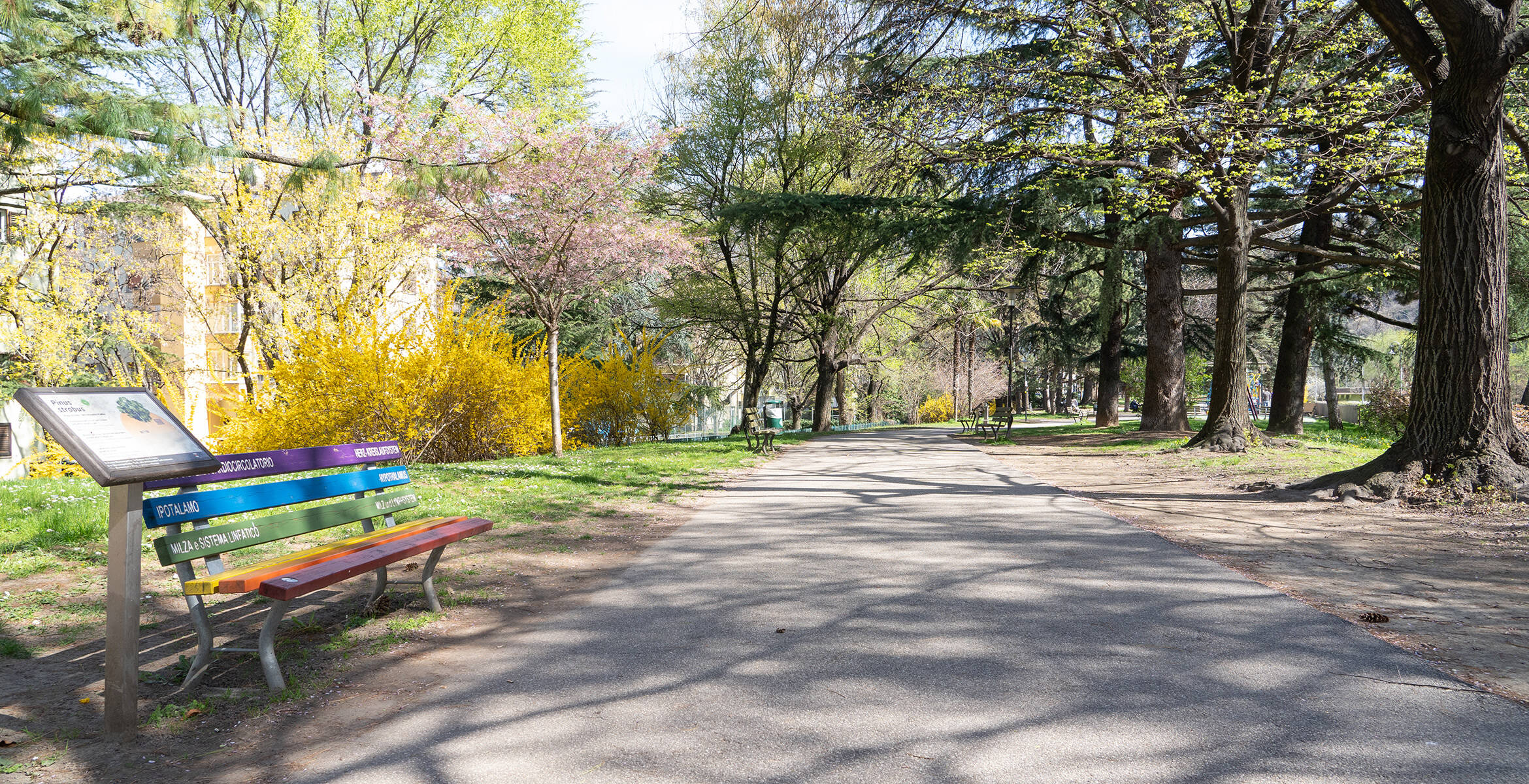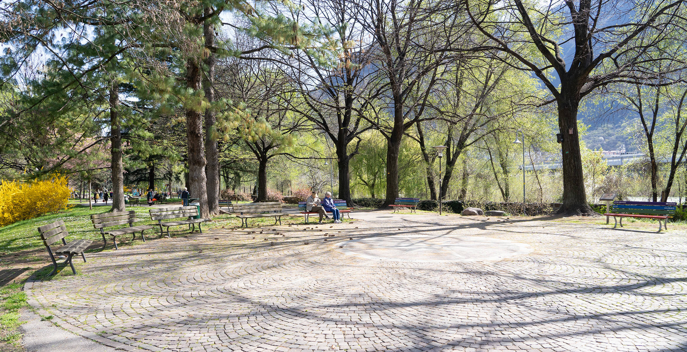 Auf diesem Abschnitt der Eisackpromenade wurden daher Möglichkeiten zum Verweilen (Parkbänke und andere Sitzgelegenheiten) eingerichtet und es gibt Hinweisschilder mit interessanten Informationen zum Thema.