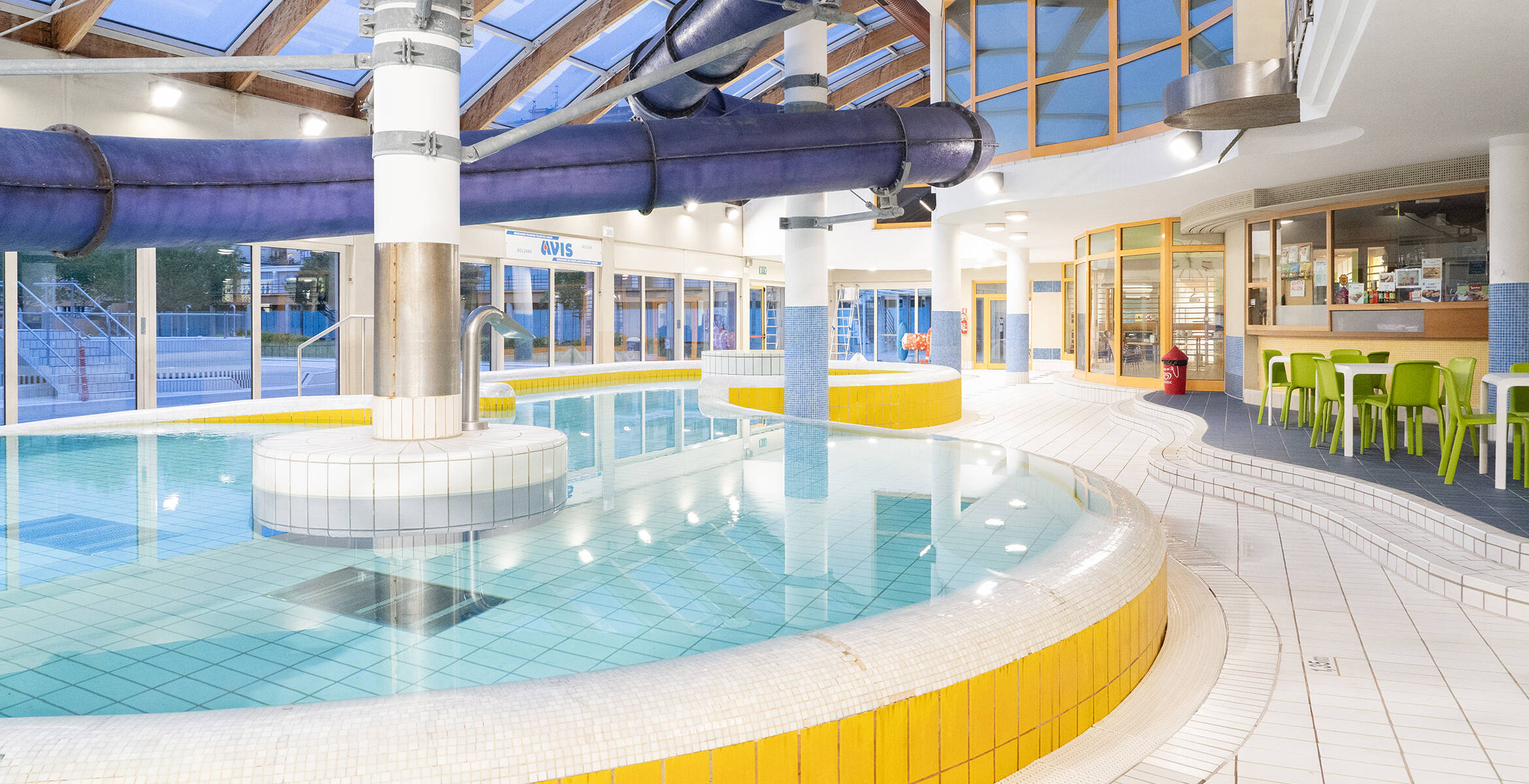 Es besteht Badehaubenpflicht. Kinder unter 12 Jahren müssen von einem Erwachsenen begleitet werden. |