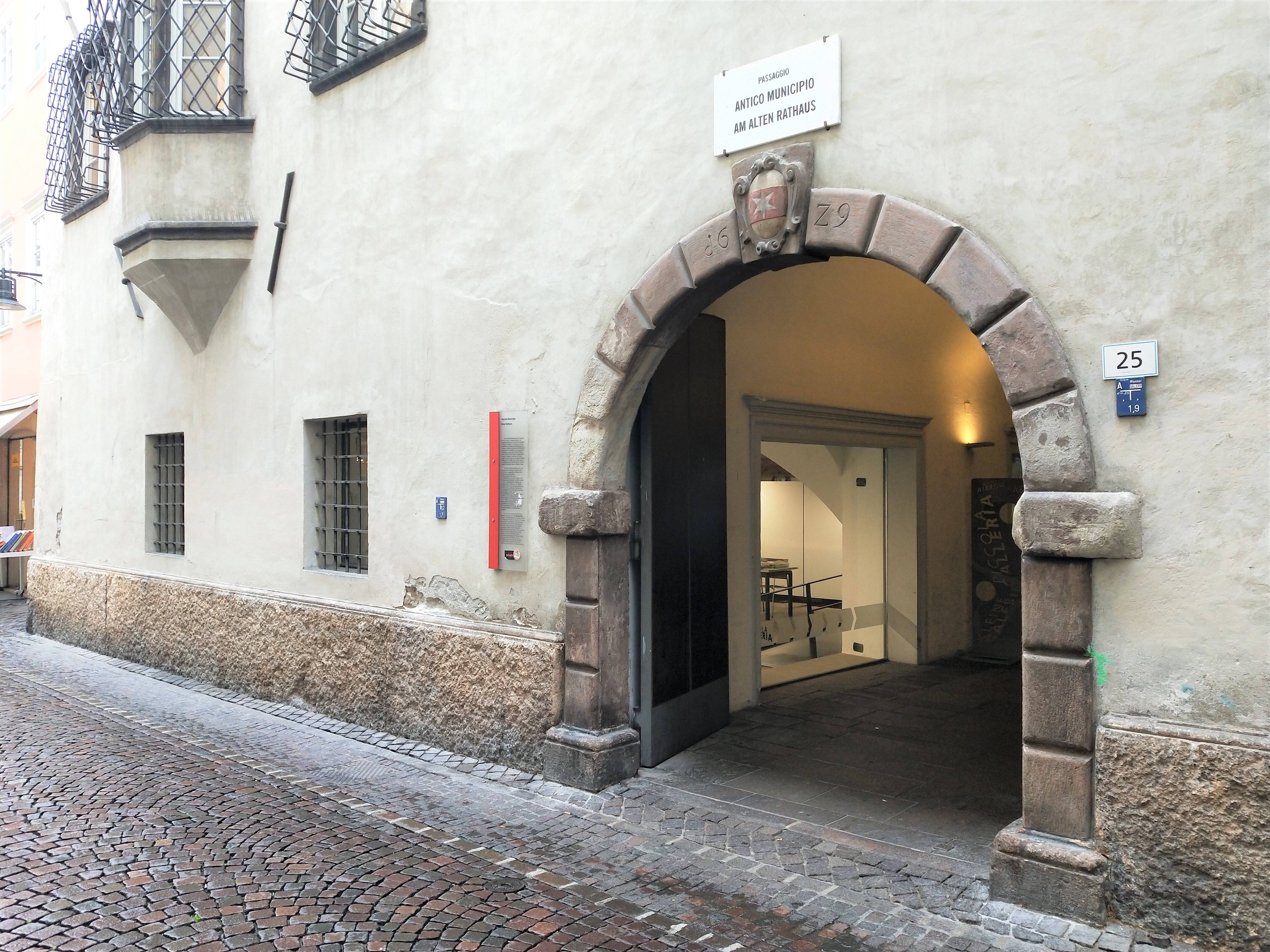 Die Kleine Galerie befindet sich im Erdgeschoss des Alten Rathauses von Bozen. Sie hat eine Fläche von 76,5 m², ist komplett mit Ausstellungspaneelen und Beleuchtungssystem ausgestattet und verfügt über Toiletten.
