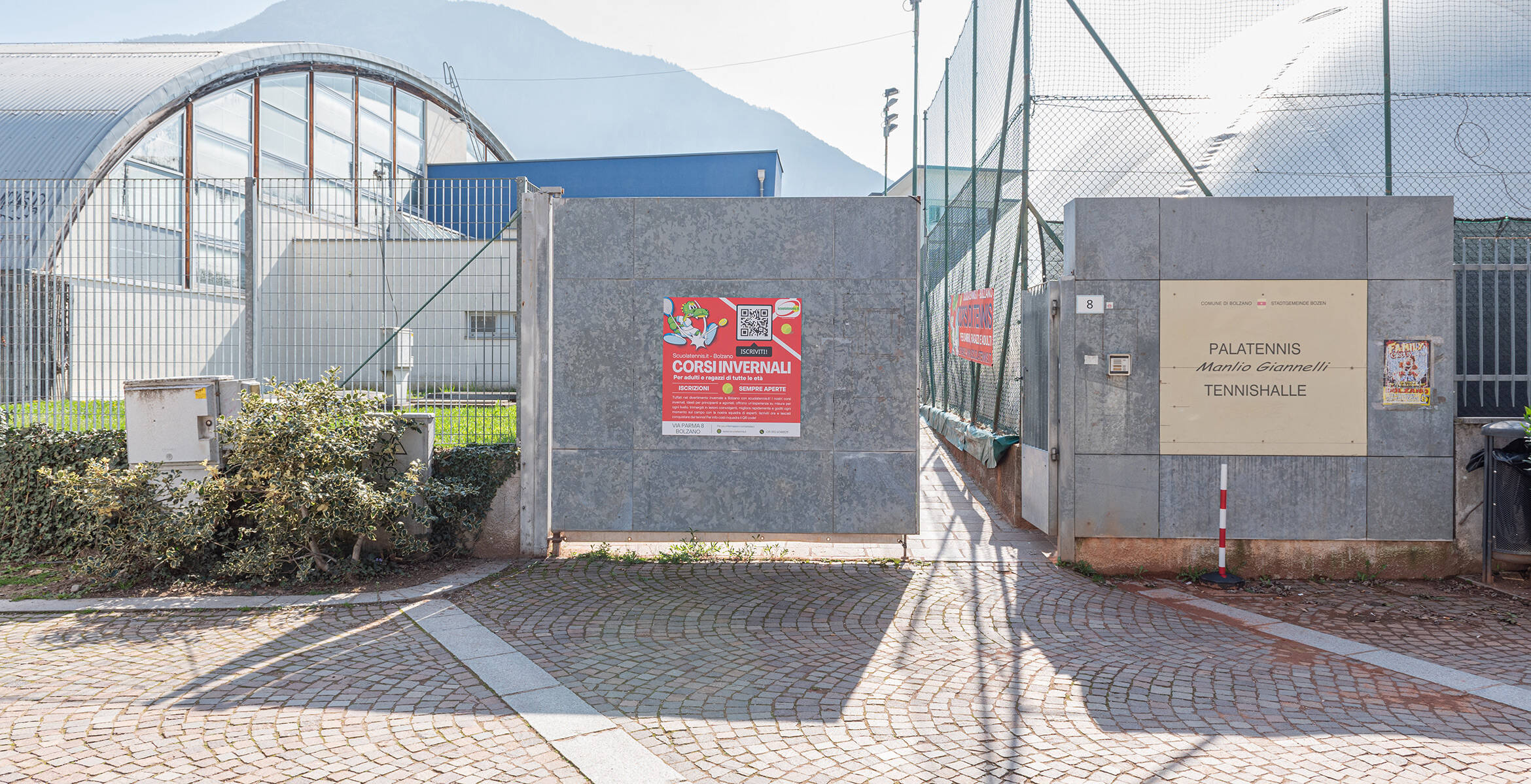 Beschreibung Sportplatz Sportliche Aktivität Tennis Benutzung Schulen, Vereine, Private Technische Daten Zwei Sandtennisplätze im FreienZwei überdachte, synthetische Tennisplätze Tennishalle "Manlio Giannelli" (2024)