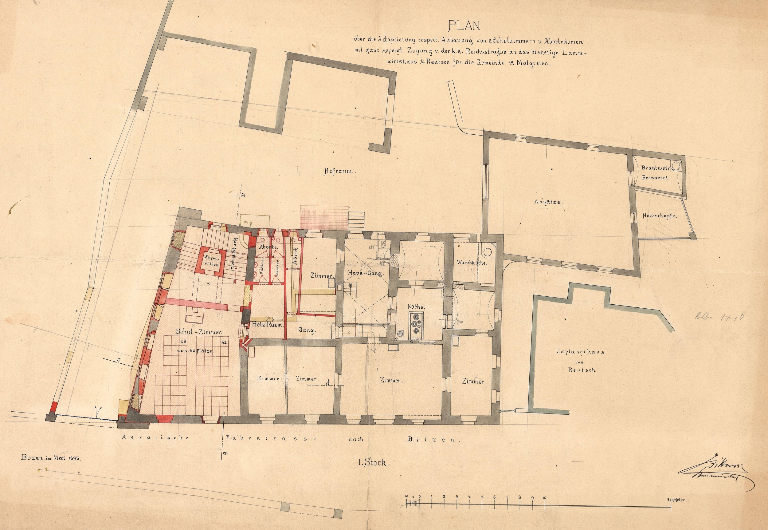 Seine historische Funktion als Gasthaus verlor das „Lamm“ erst in den 90er Jahren des letzten Jahrhunderts. Von 1885 bis 1928 wurde hier eine Grundschule eingerichtet, die dann in das neue, rückwärtig gelegene Schulhaus – die heutige deutschsprachige Karl-Felix-Wolff-Schule –übersiedelte. Im Schuljahr 1910/11 besuchten die rentscher Schule nicht weniger als 206 GrundschülerInnen, 40 von ihnen stammten aus dem Einzugsbereich von Kampenn.