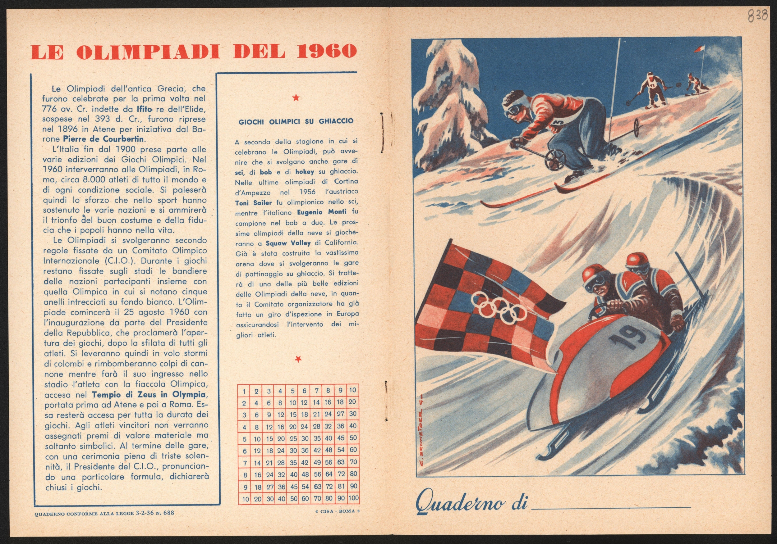 Seine Sammlung an Schulheften belegt die Entwicklung der Didaktik, des Geschmacks und ganz allgemein der Gesellschaft, in deren Umfeld sie angelegt und benützt wurden. Die farbig illustrierten Umschläge stellen Personen, Orte, Ansichten, Ereignisse, Comics, Märchen und andere Themen der italienischen Geschichte und Kultur dar. Einen bedeutenden Abschnitt bilden die Schulhefte aus der Zeit des Faschismus.