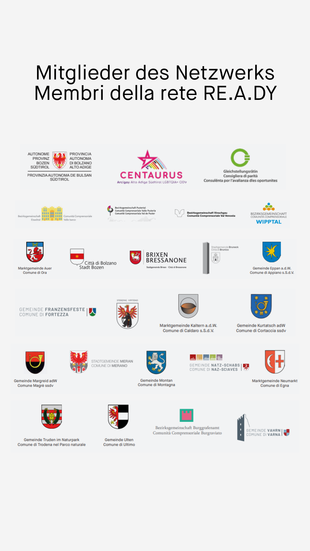 Der Beitritt zum nationalen Netzwerk ist ein wichtiger Schritt von einem Weg, der durch die Unterzeichnung des Einvernehmensprotokolls der Gemeinde Bozen mit der Vereinigung "Centaurus" im Jahre 2012 eingeschlagen wurde, um eine fairere, gerechtere und von mehr Gleichheit gekennzeichneten Gesellschaft zu schaffen. Dem Netzwerk wurde diese Web-Seite gewidmet, um es bei der Förderung der Informationsverbreitung zu unterstützen.