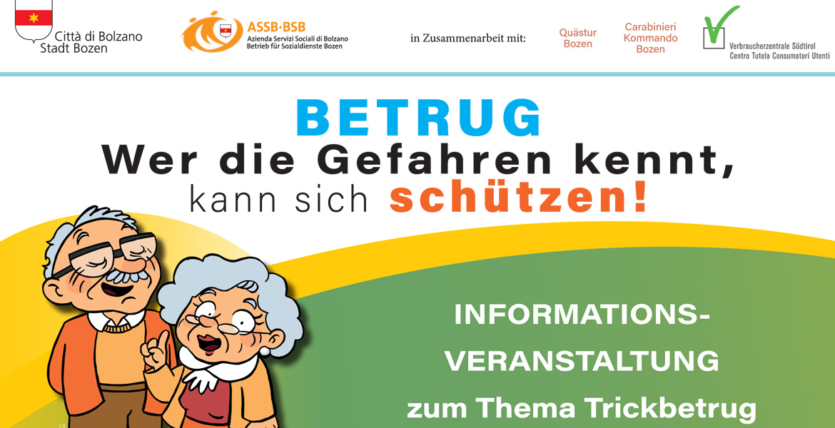 Die Gemeinde Bozen hat ausserdem in Zusammenarbeit mit dem BSB einen den Senioren gewidmeten Telefondienst angebahn. Ein zu diesen und anderen Themen ausgebildeter Sozialpädagoge steht von Montag bis Freitag an der Telefonnummer 0471 1626266 zur Verfügung und gibt nützliche Informationen hinsichtlich Betrügen; zudem werden Anfragen für soziale Unterstützung vonseiten der Senioren oder deren Familienangehörigen, Freunden und/oder Bekannten angenommen.